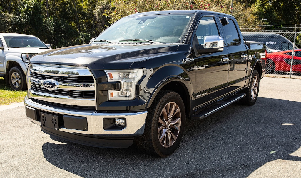 2015 Ford F-150 Lariat 110V/400W Outlet, 2nd Row Heated Seats, Automatic High Beam w/Rain-Sensing Wipers, Auxiliary Transmission Oil Cooler, BLIS Blind Spot Information System, Chrome 3-Bar Style Grille w/Chrome Surround, Chrome Angular Step Bars, Chrome Door Handles w/Body-Color Bezel, Chrome Skull Caps on Exterior Mirrors, Class IV Trailer Hitch Receiver, Equipment Group 502A Luxury, Heated Steering Wheel, Lariat Chrome Appearance Package, Leather-Trimmed Bucket Seats, LED Side-Mirror Spotlights, Power Glass Sideview Mirr w/Chrome Skull Caps, Power Tilt/Telescoping Steering Column w/Memory, Quad Beam LED Headlamps & Taillamps, Radio: Sony Single CD w/HD & SiriusXM Satellite, Remote Start System, Reverse Sensing System, Single-Tip Chrome Exhaust, Trailer Tow Package, Twin Panel Moonroof, Universal Garage Door Opener, Upgraded Front Stabilizer Bar, Voice-Activated Navigation, Wheels: 18" Chrome-Like PVD.